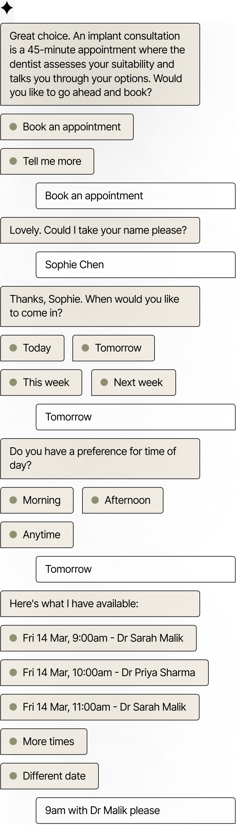 From enquiry to confirmed appointment in three steps.